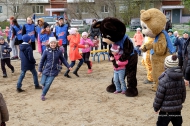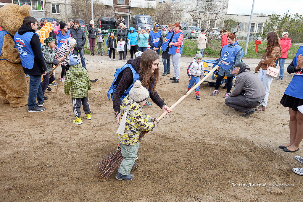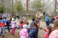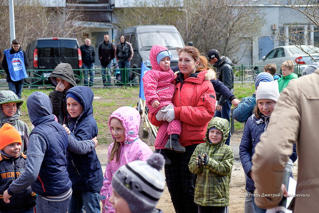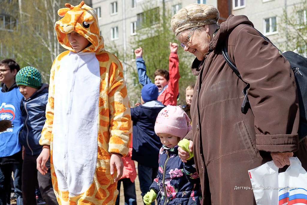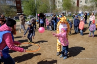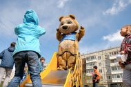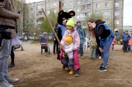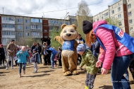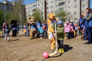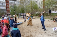 Медведи, фото на память с которыми, хотел сделать каждый ребенок, жираф и другие сказочные персонажи порадовали ребятню всех возрастов. Хоккей на земле, баскетбол с воздушными шарами и даже эстафета на метлах - каждый конкурс участники встречали радостными возгласами. Развлечение придумали не только для детей, но и их родителей – папам, к примеру, предложили побороться за звание самого сильного во дворе и потягать гирю.