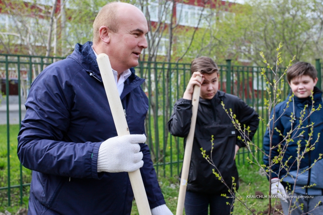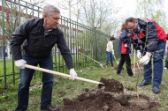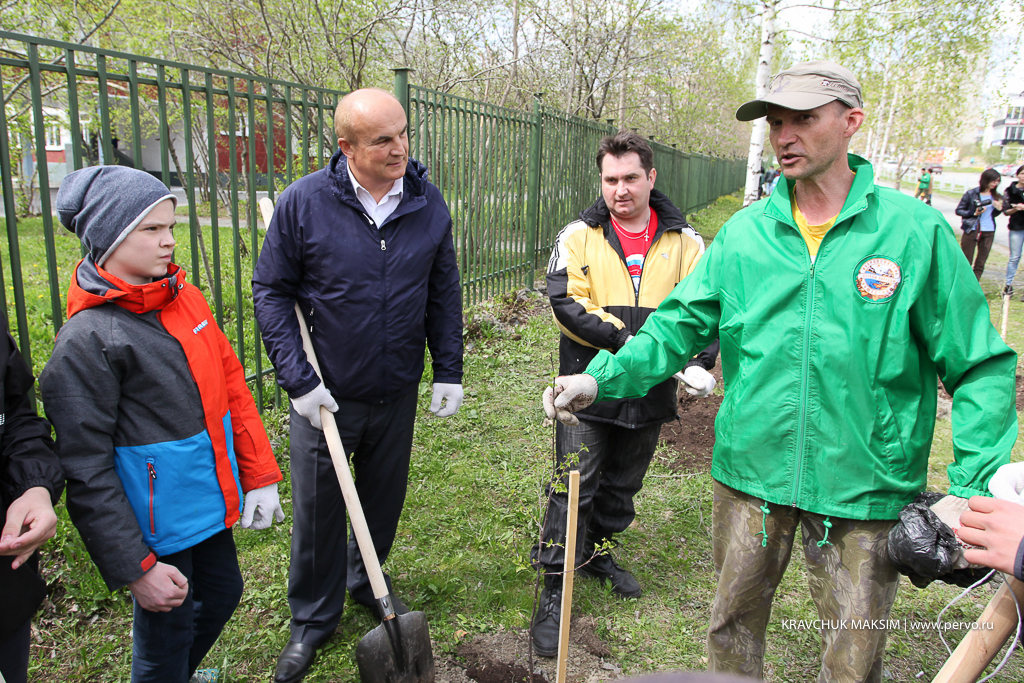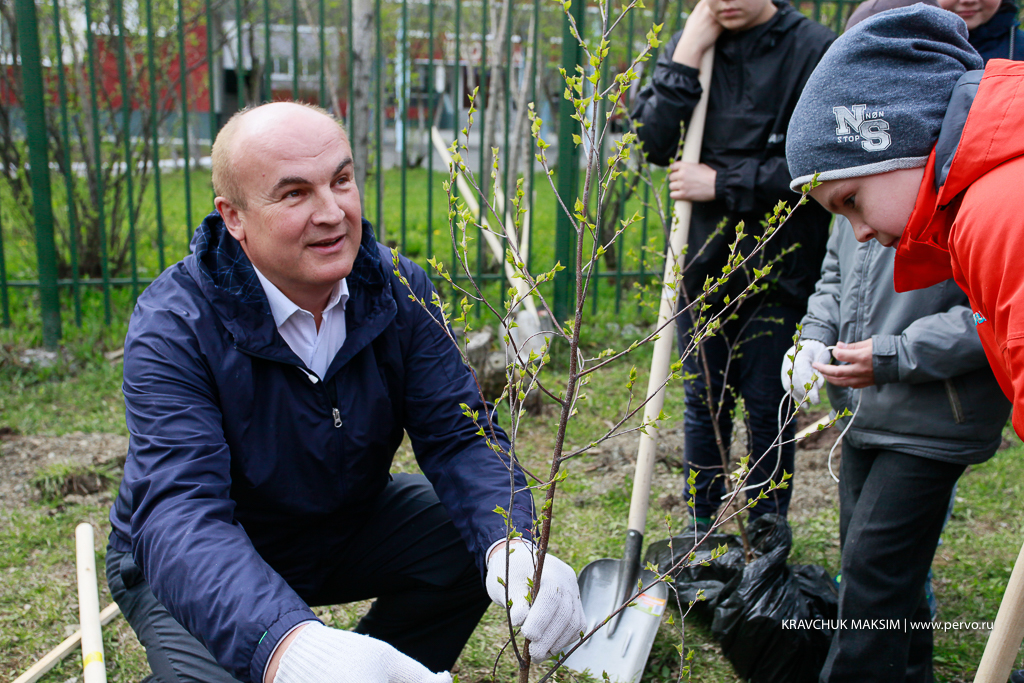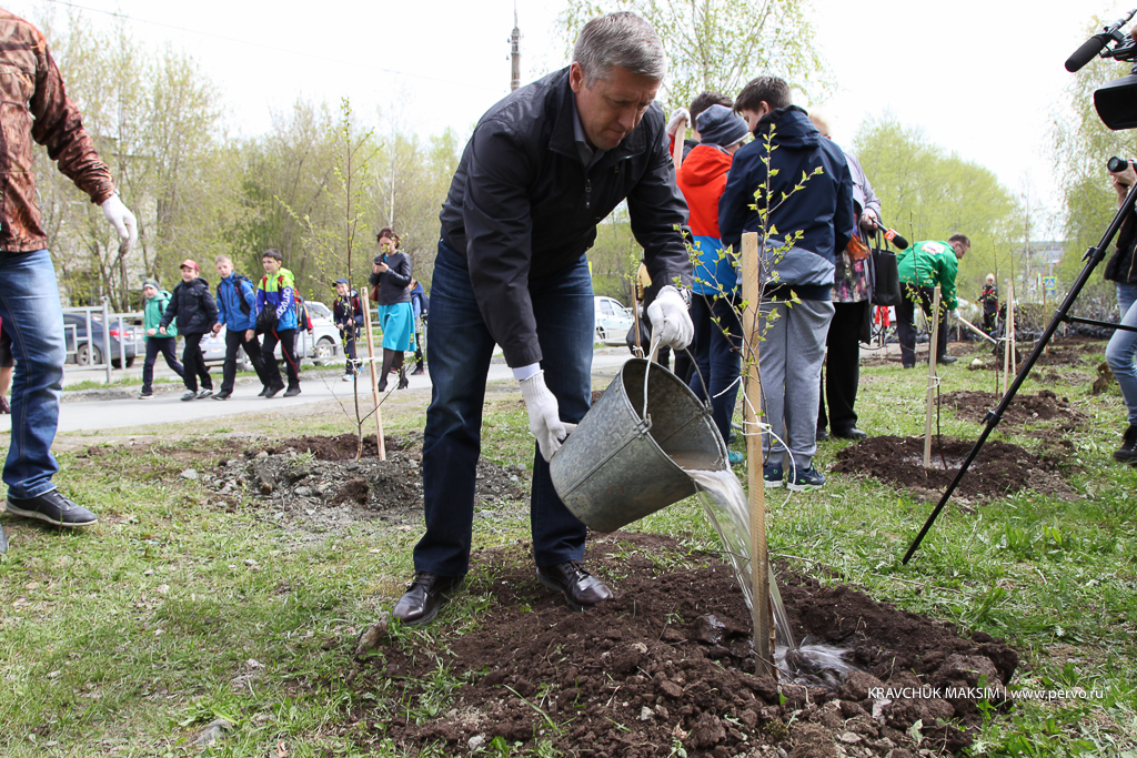 На улицах Первоуральска, в парках и скверах появляются саженцы деревьев. Активно участвуют в процессе озеленения города областные и городские власти. Сотню молодых берез у школы № 7 в минувшую пятницу высадили министр природных ресурсов и экологии Свердловской области Алексей Кузнецов, глава Первоуральска Николай Козлов, исполняющий обязанности главы администрации городского округа Первоуральск Валерий Хорев и заместитель председателя Первоуральской городской Думы Эдуард Вольхин, которым помогали школьники и активисты.