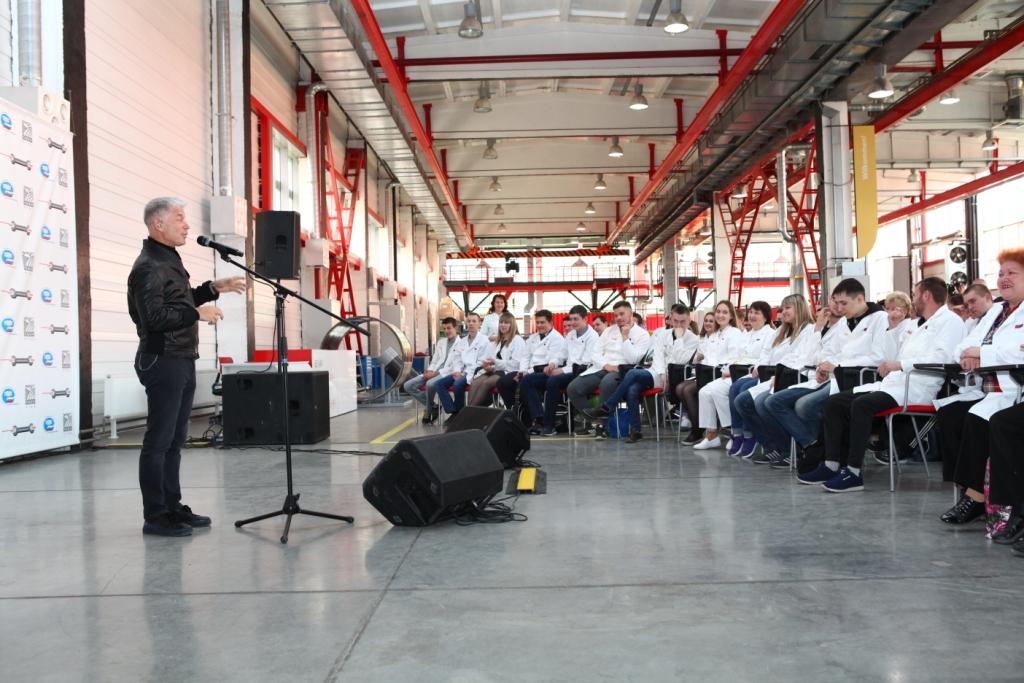 На площадке ПНТЗ выступил эстрадный певец, композитор, поэт и продюсер Олег Газманов. В экспериментальном цехе Образовательного центра состоялась творческая встреча музыканта со студентами проекта «Будущее Белой металлургии» и сотрудниками Новотрубного завода.