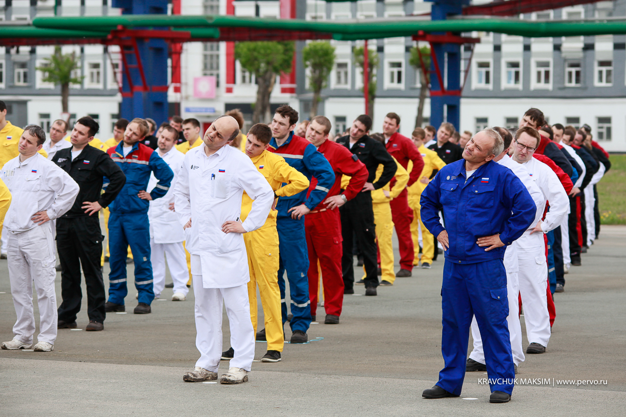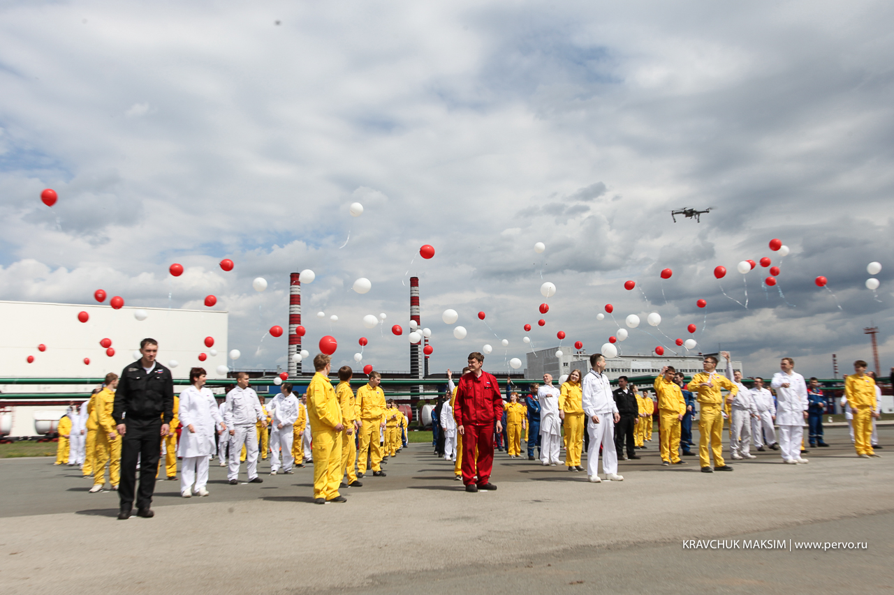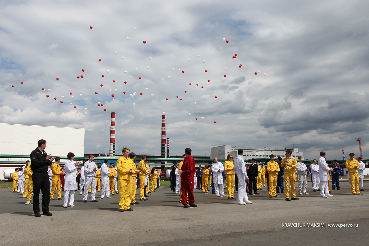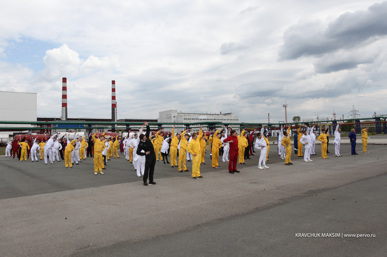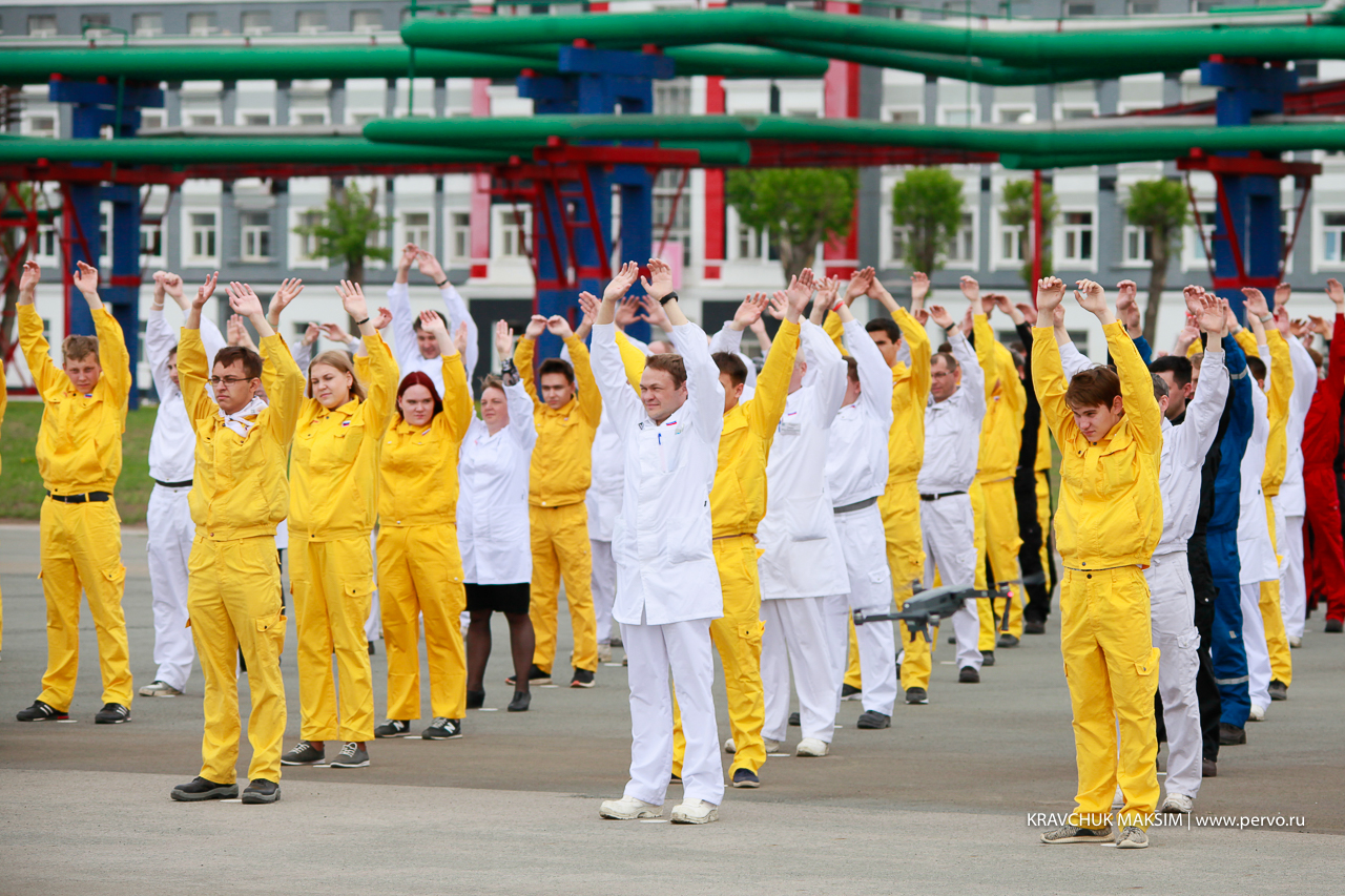 Завершил Неделю здоровья и безопасности традиционный флешмоб – производственная зарядка, в финале которой сотрудники запустили сотни шаров в небо.