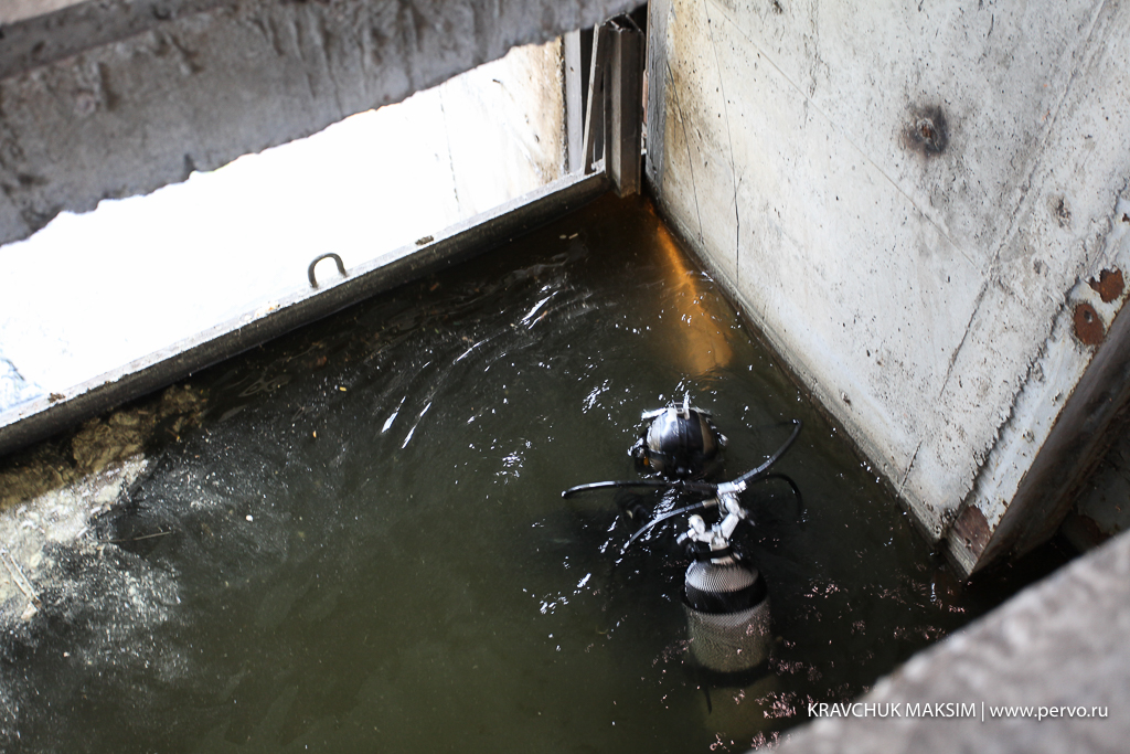 На глубине трех метров водолаз обнаружил бревно, которое попало в затвор плотины. После комплекса подводных работ, бревно было извлечено и работоспособность гидротехнического сооружения была восстановлена.