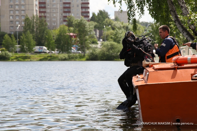 Поле визуального осмотра плотины, было принято решение привлечь к обследованию спасателей МЧС. Через несколько минут к гидротехническому сооружению пришвартовался катер с водолазом. После получения вводной инструкции, водолаз опускается в воду.