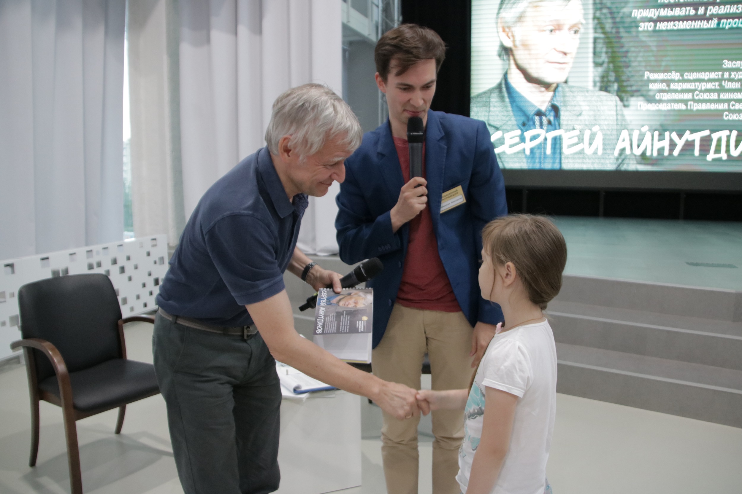Героем встречи стал член правления Уральского отделения Союза кинематографистов России, председатель Свердловского регионального отделения Союза художников России, мультипликатор, заслуженный художник Сергей Айнутдинов. Гость для первой встречи был выбран неслучайно. Именно Сергей Сагитович в настоящее время участвует в разработке концепции будущей студии анимации.