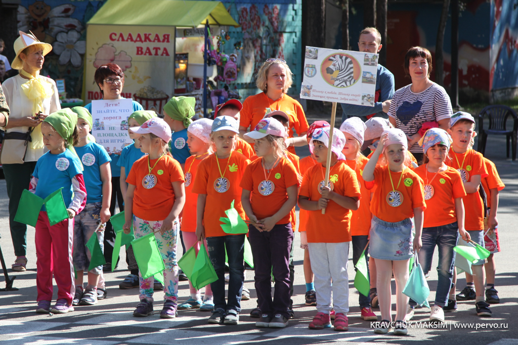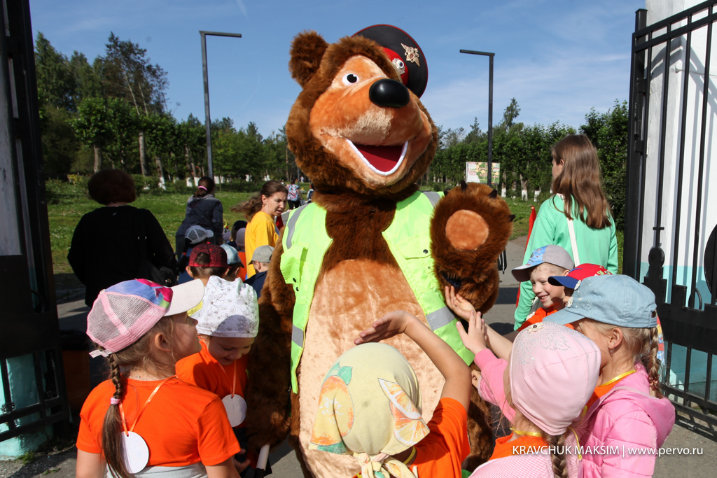 У входа в парк ребятишек встречал необычный инспектор ДПС – большой и добрый мишка, кроме медведя детей ждала встреча с водяным, клоуном, бегемотиком и фиксиком Симкой. Каждый персонаж подготовил для маленьких участников интересное задание на тему безопасности дорожного движения: выловить удочкой из бассейна утопленные водяным дорожные знаки, спеть тематические песни для клоуна, разобрать дорожные ситуации, разгадать кроссворд, блеснуть навыками фогурного вождения самоката и многое другое...