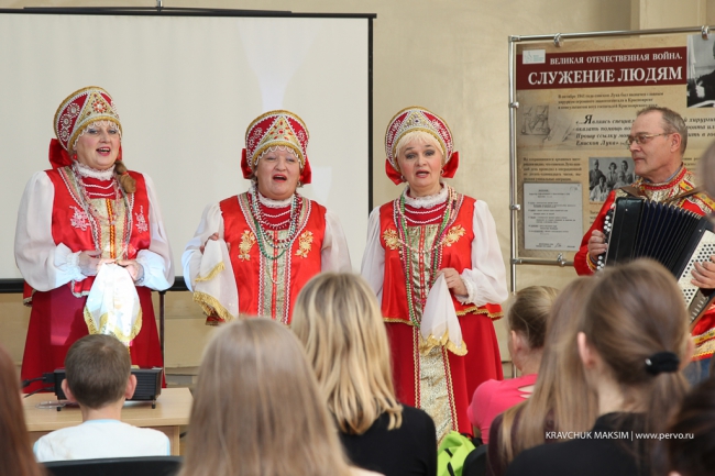 Поздравлять президента с юбилеем будут по всей стране: флэшмобы, спортивные соревнования, выставки и концерты, телеэстафеты. Хор Рябинушка, специально приглашенный на открытую лекцию в центральную библиотеку, помог создать по-настоящему русскую атмосферу.