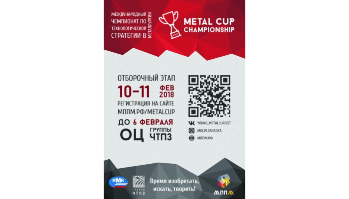 Группа ЧТПЗ выступит генеральным партнером чемпионата по технологической стратегии в металлургии «Metal Cup - 2018». Первые отборочные соревнования состоятся 10-11 февраля 2018 года в Первоуральске в Образовательном центре компании.