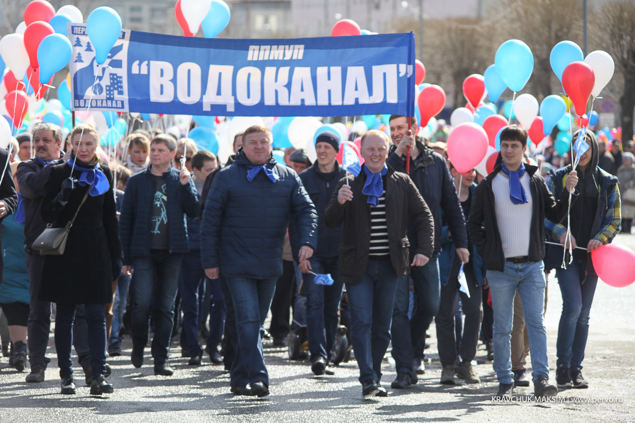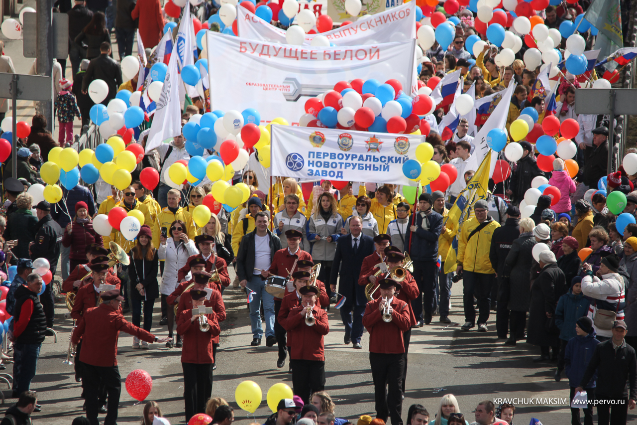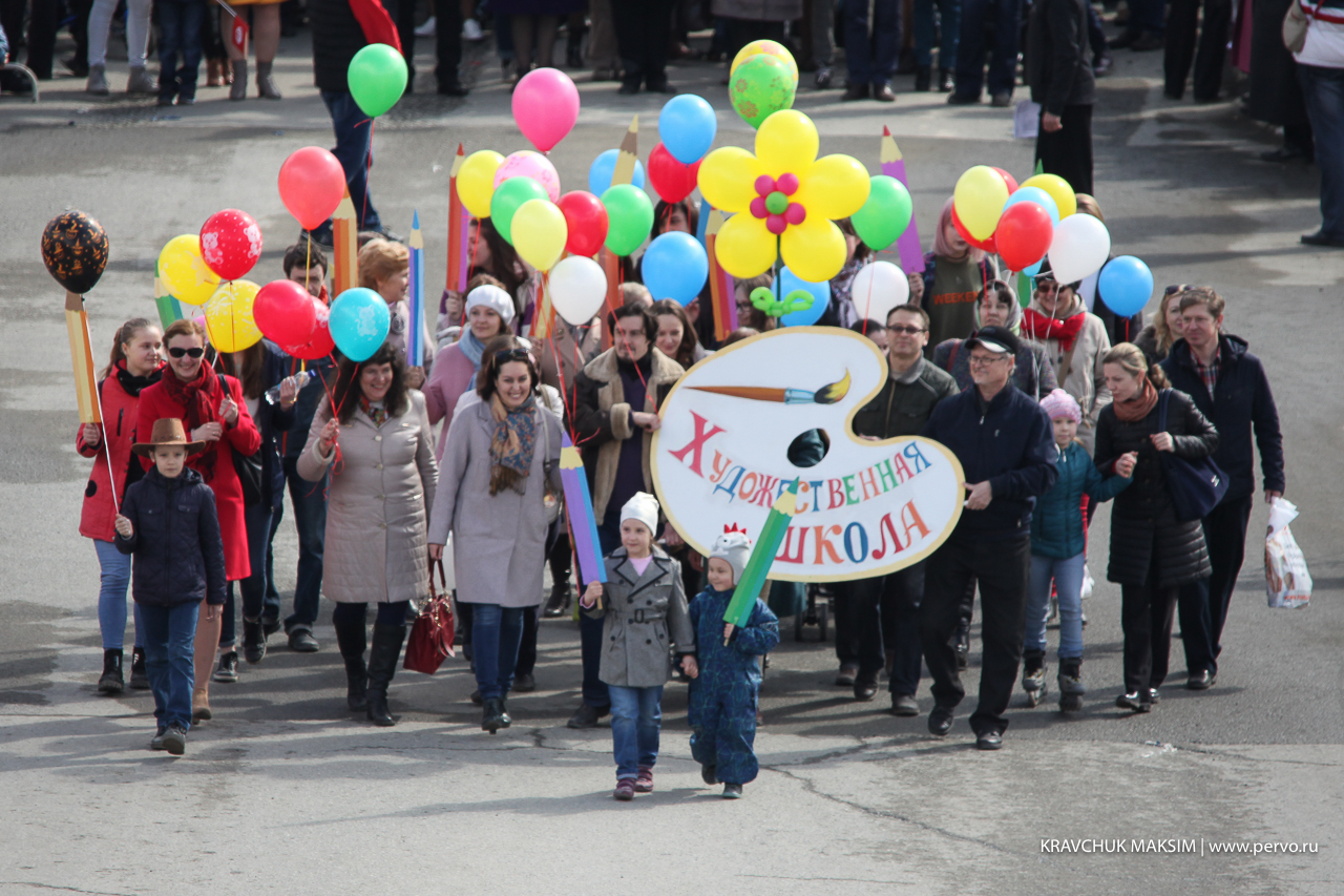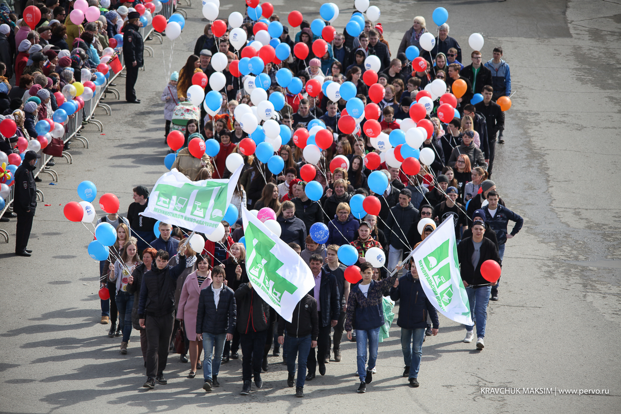 Под крики «УРА!», «Мир! Труд! Май!» и «Да здравствует Первомай» по центральной улице города, размахивая шарами и плакатами, самодельными и живыми цветами, прошли представители промышленных предприятий и заводов, вузов, школ и детских садов, политических партий, учреждений культуры и здравоохранения, предприятий сферы услуг.