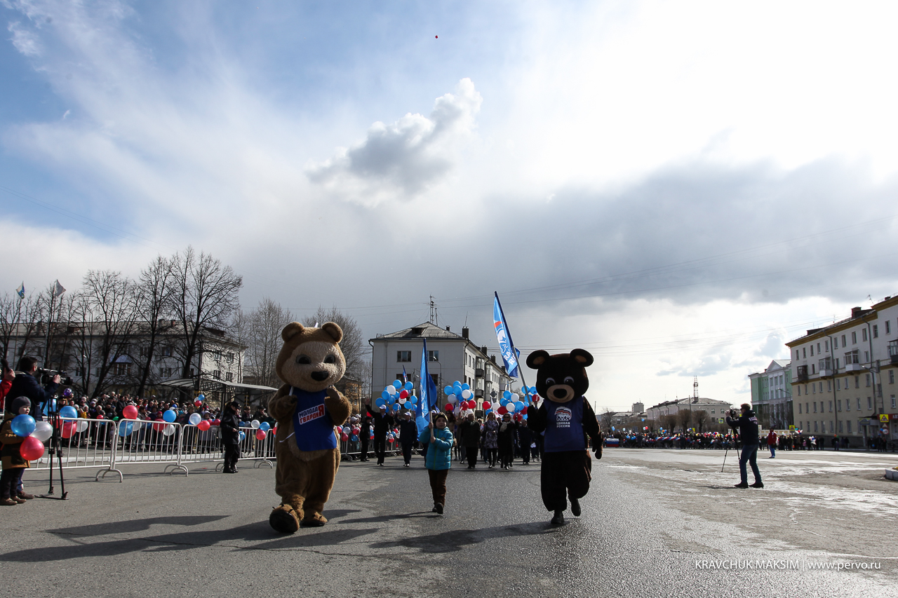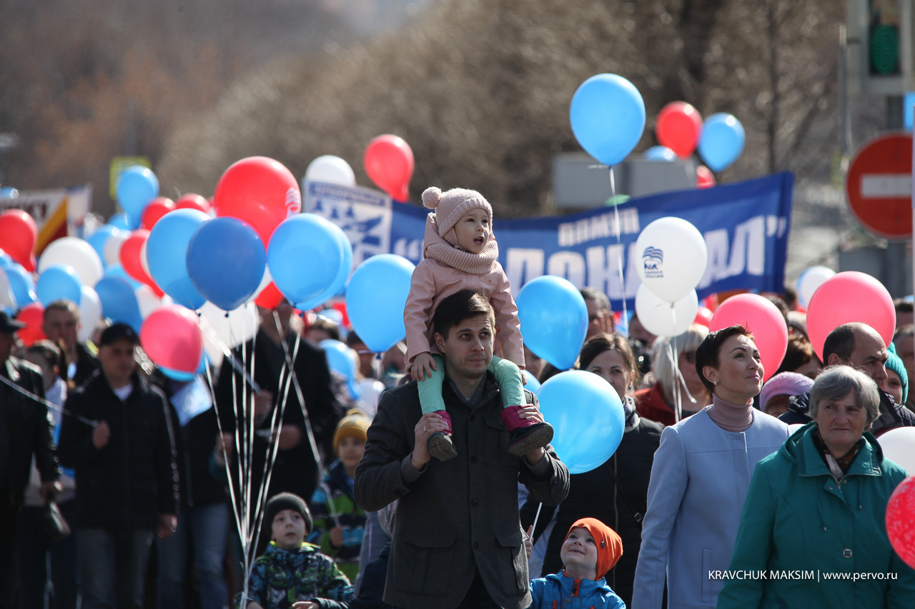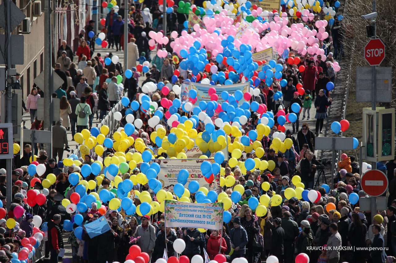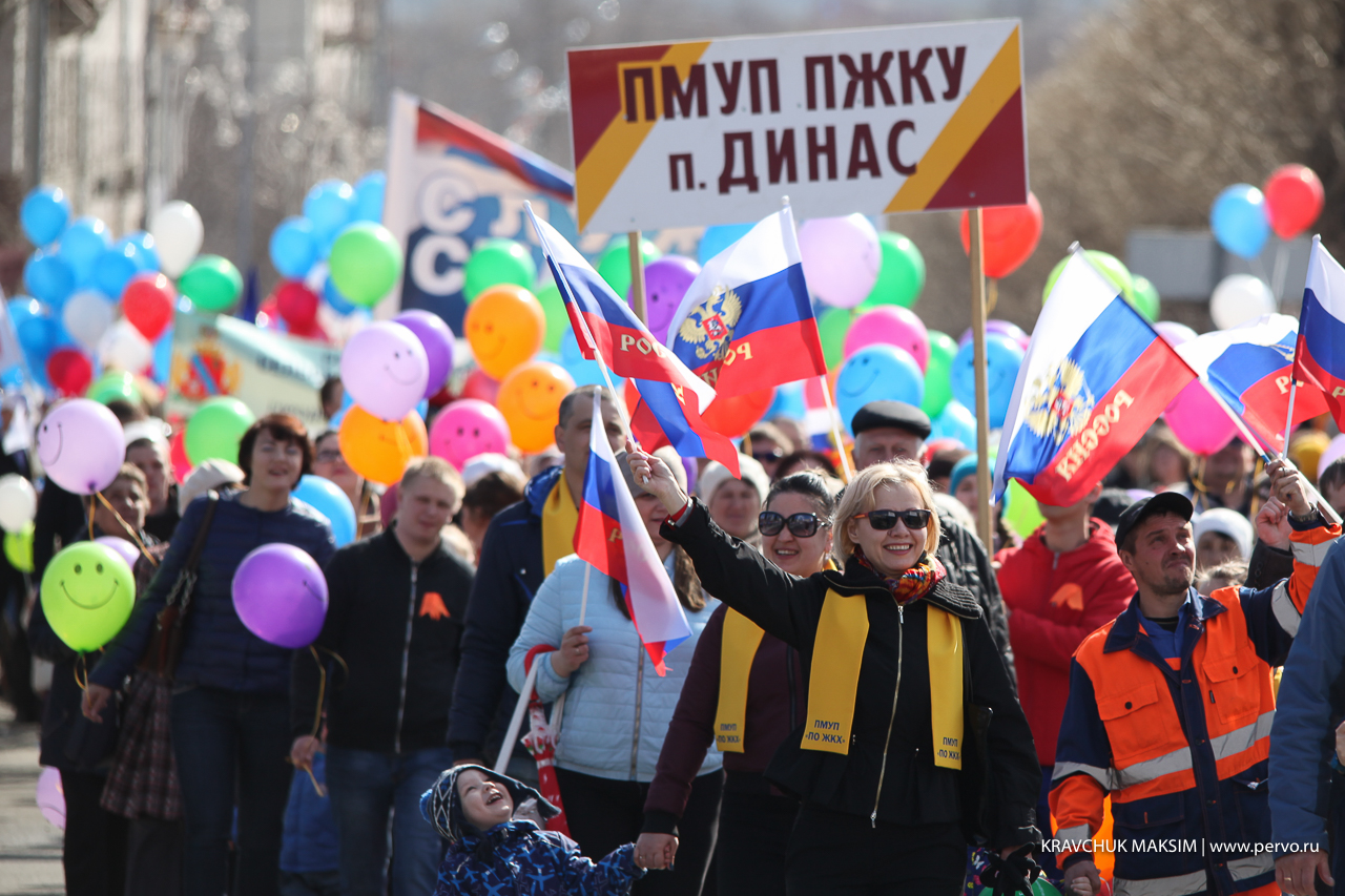 Под крики «УРА!», «Мир! Труд! Май!» и «Да здравствует Первомай» по центральной улице города, размахивая шарами и плакатами, самодельными и живыми цветами, прошли представители промышленных предприятий и заводов, вузов, школ и детских садов, политических партий, учреждений культуры и здравоохранения, предприятий сферы услуг.