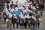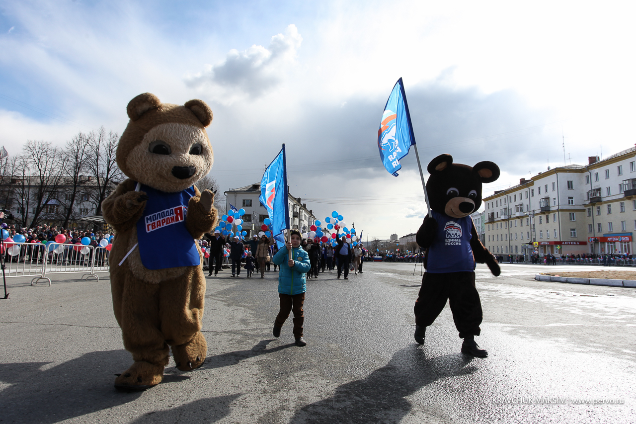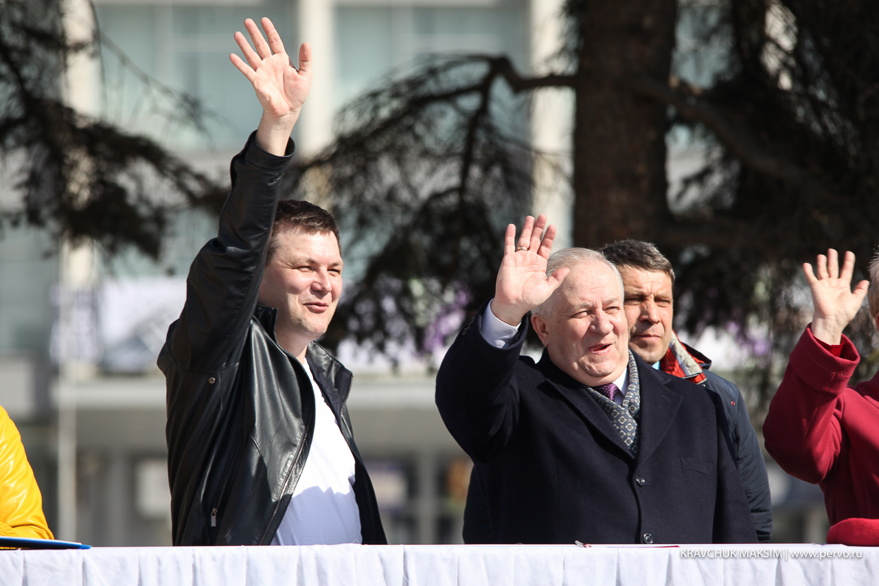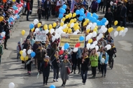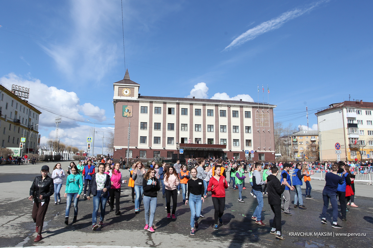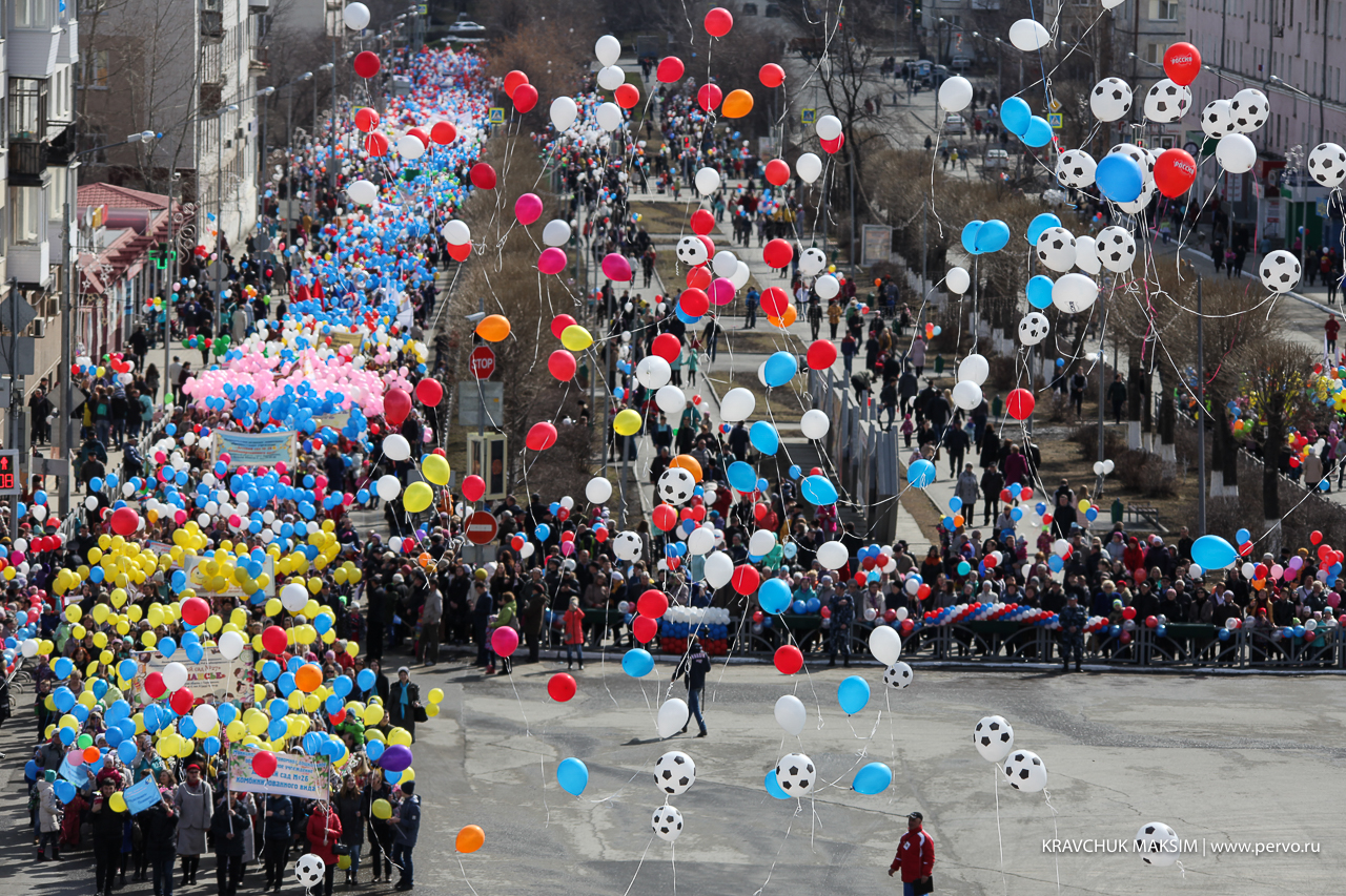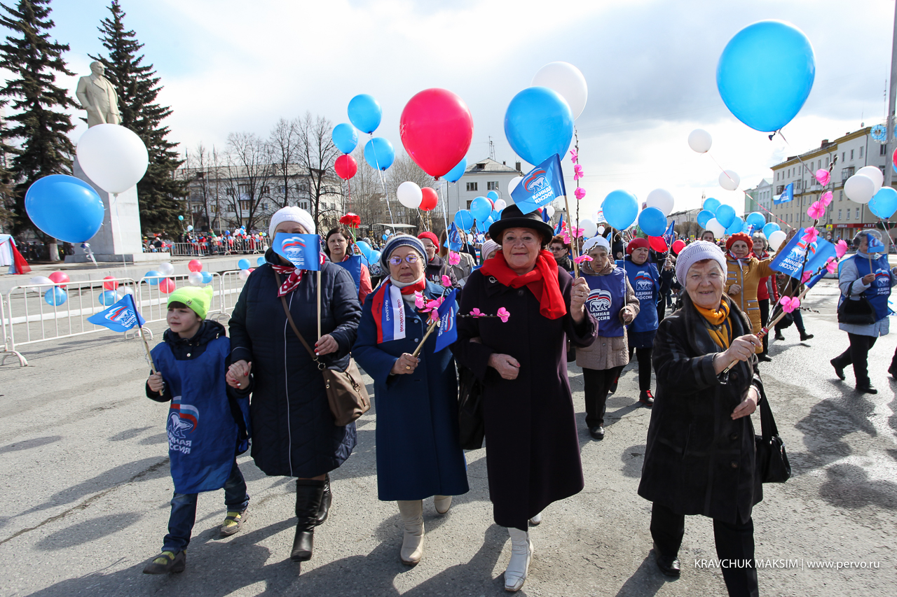 Под крики «УРА!», «Мир! Труд! Май!» и «Да здравствует Первомай» по центральной улице города, размахивая шарами и плакатами, самодельными и живыми цветами, прошли представители промышленных предприятий и заводов, вузов, школ и детских садов, политических партий, учреждений культуры и здравоохранения, предприятий сферы услуг.