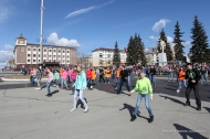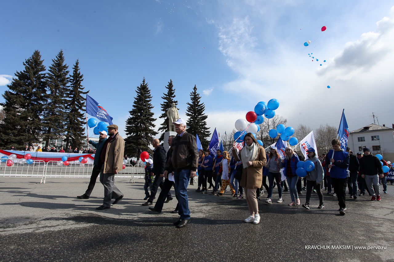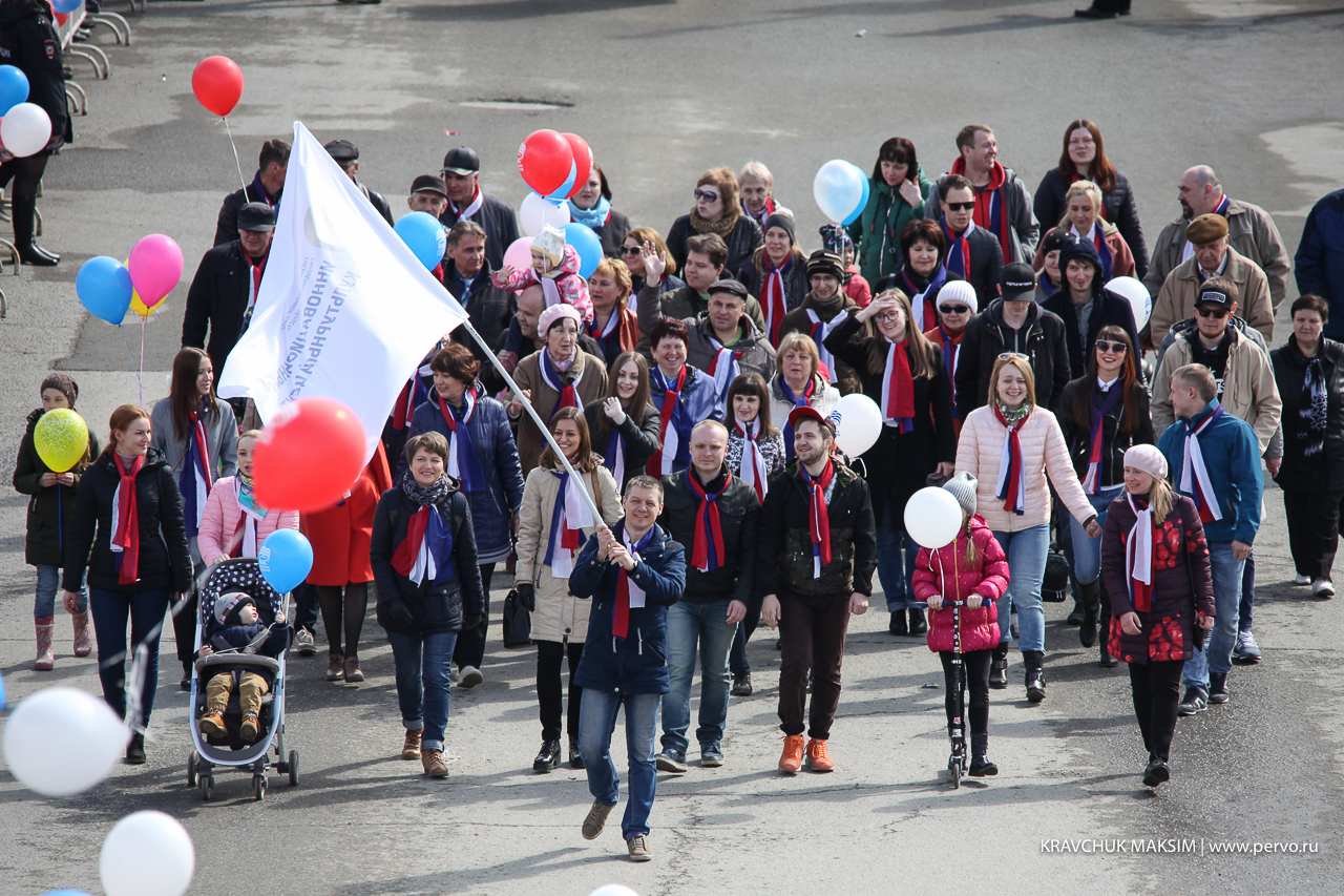 Совсем как в старые добрые времена, все желающие дружно вышли на демонстрацию в праздник весны и труда. Участники собрались на площадке у ТРЦ «Строитель» и выстроились в колонну до центральной площади города. С погодой горожанам повезло - ярко светило солнце.
