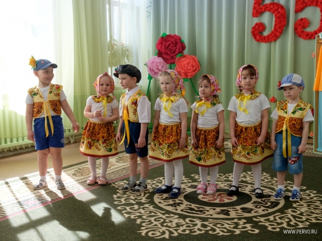 В честь юбилея малыши показали театральную постановку, поздравив тем самым педагогов и родителей.