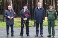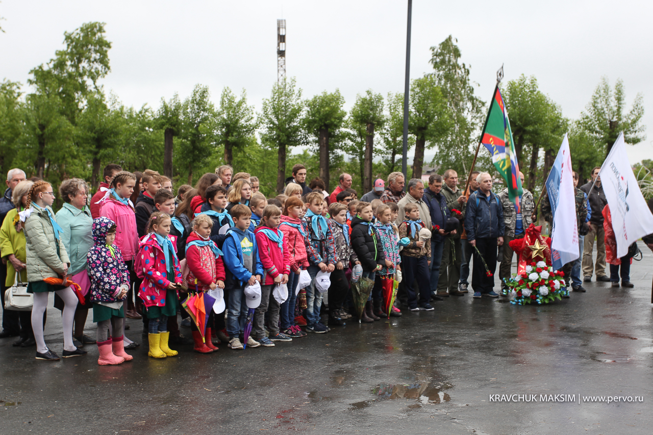 Прийти и почтить память погибших пришли временно исполняющий полномочия главы Первоуральска Игорь Кабец, ветеран Великой отечественной войны Павел Казанцев, комиссар города Первоуральск и Шалинского района Свердловской области Сергей Дарманов, руководитель территориального ОВД полковника полиции Олег Грехов, школьники и представители патриотических организаций города.