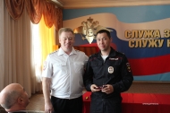 От лица руководства и совета ветеранов памятным знаком «За верность и преданность» награждены мамы инспекторов ДПС Елена Жилина и Татьяна Добрынина. Эти женщины воспитали достойных сыновей, настоящих профессионалов своего дела - Антона Жилина и Дмитрия Добрынина.