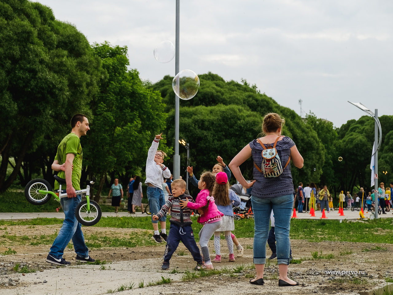 Для юных первоуральцев в этот день были открыты различные площадки с развлечениями. Стритбол, полоса препятствий, спортивные состязания на велосипедах, роликах и самоката, - чего здесь только не было. Дети смогли сыграть с ростовыми куклами в комический футбол – изюминка праздника.