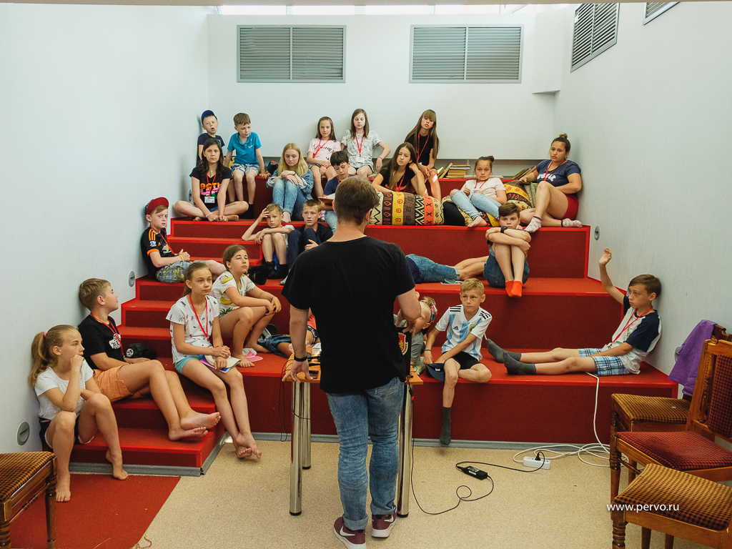 10:30 часов, в ФОК «Гагаринский» у детворы – самое время для занятий по интересам, репетиций, спортивных секций. Пока воспитанники при деле, за условиями их отдыха наблюдают депутаты и молодогвардейцы.