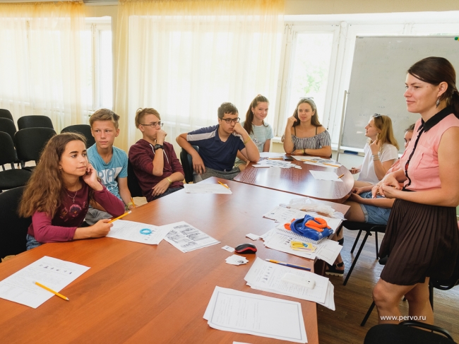 В другой аудитории девчонки и мальчишки изучали английский язык. Вторая смена так и называется - «Билингва», что означает «два языка», пять раз в неделю у ребят проходят занятия по английскому и трижды - по русскому языку.