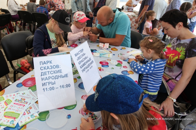 Участник выставки – «Парк сказов» специализируется на изделиях из камня. Детей и взрослых больше всего привлекает возможность сделать браслет из природных камней. Мастера показывают, как подбирать камни по расцветке. А еще в парке обучают народным играм, обычаям, традициям.