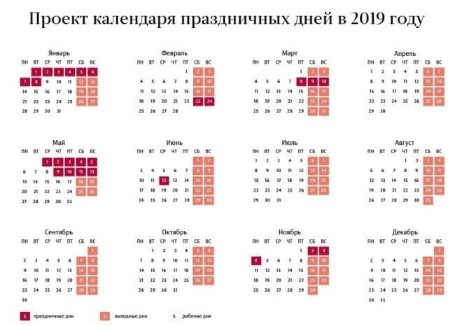 Российская трехсторонняя комиссия по регулированию социально-трудовых отношений утвердила график выходных и праздничных дней на 2019 год. Документ публикуется на сайте правительства.