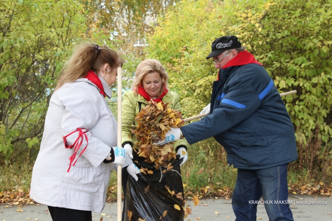 В Первоуральске прошел субботник, посвященный 100-летию коммунистического союза молодежи.