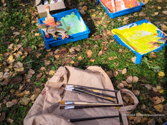 — Мы рисуем фасадной акриловой краской, — продолжает Сергей Викторович, — она долговечна, специально создана для работы в «атмосферных» условиях, но, если что-то случится, мы готовы подкрасить картины.