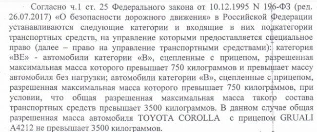 — Я им объяснил, что, в соответствии с законом, при наличии категории В можно управлять транспортным средством до 3500 килограммов, а у моей машины вес 1224 килограмма и трейлера — 1100 килограммов, в общем получается 2324 килограмма, — рассказывал 59.ru Михаил Колмаков. — Они выслушали мою версию и не придали ей значения.