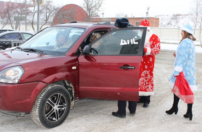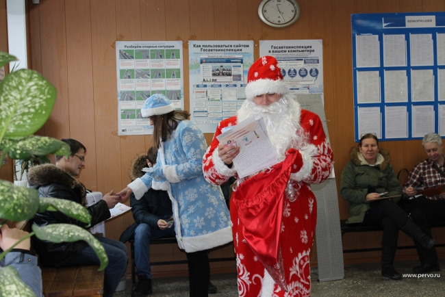 Сотрудники Первоуральской ГИБДД и представители спортивно-технического клуба «Апекс» дарили водителям подготовленные детьми письма с пожеланиями о соблюдении правил дорожного движения и проявления уважительного отношения к другим участникам. Также водители получи световозвращающие термпонаклейки и тематические календари. Вместе с тем, полицейские напоминали о необходимости соблюдения правил дорожного движения, особенно в части, касающейся безопасной перевозки детей и повышенного внимания на дорогах в столь напряженные предпраздничные дни. Также Деда мороз и Снегурочка поздравили водителей, который посетили в этот день регистрационно-экзаменационное отделение ГИБДД.