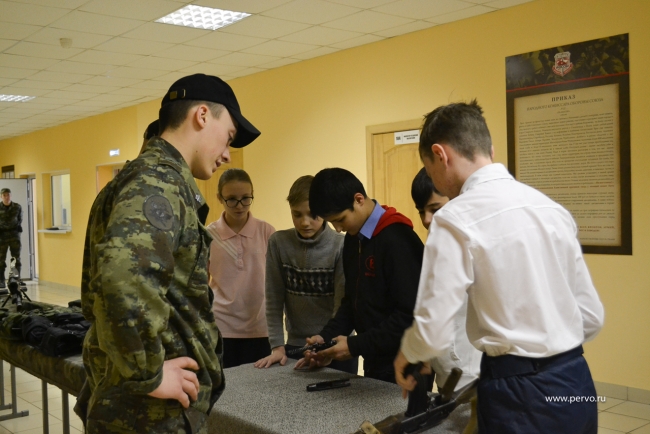 Дополнительно, с целью подготовки команды учащихся 7 класса школы № 12 к городской военно-спортивной эстафете, сотрудниками «Россы» было проведено с ними занятие по сборке и разборке автомата Калашникова и снаряжению магазина.