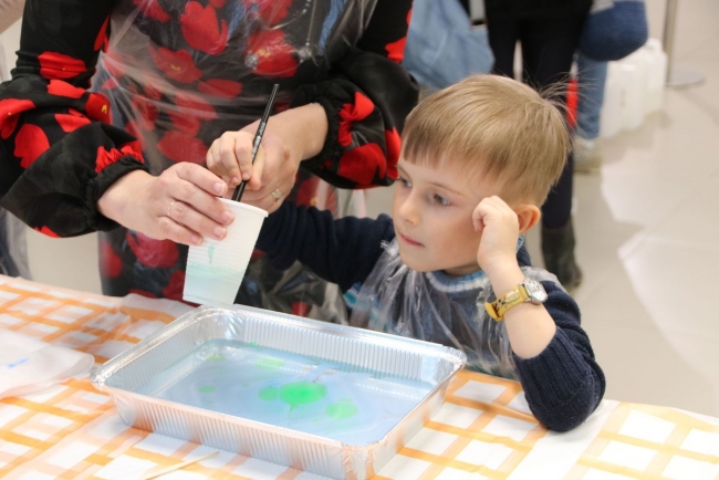 — Мы в первый раз рисовали в технике Эбру, — поделилась Елена Горшенина. — Ребенку понравилось. Он не успел устать, а рисунок получился эффектным. Я тоже довольна. Хотелось бы попробовать порисовать в этой технике дома.