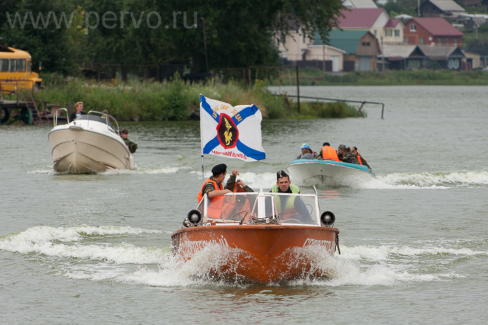 А в программе мероприятия были задействованы детские клубы "Морская пехота" из поселка Рефтинский и "Пересвет-1" и "Пересвет-2" из города Артёмовского. Между ними прошло состязание: кто лучше проведет высадку морского десанта. Наш город отстаивала парусная флотилия под командованием капитана запаса Василия Зудилова. Своя программа предусматривалась, конечно, для взрослых. Они могли померяться в гиревом спорте. Кстати, в ней поучаствовал и М.И. Власов.