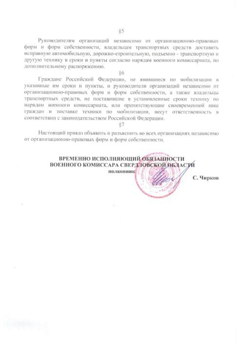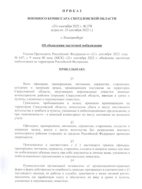 Военный комиссариат Свердловской области внёс поправки в указ по частичной мобилизации.