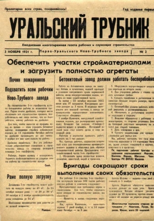 А начиналось все еще тогда, когда Новотрубный был большой строительной площадкой: первый номер «Уральского трубника» вышел в свет 80 лет назад, 3 ноября 1931 г.
