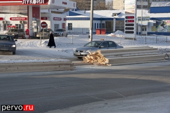 Сегодня в 16:00 у автосервиса «Юмакс» из груженого КамАЗа выпали доски. Грузовой автомобиль стоял на светофоре, при загорании зелёного сигнала, КамАЗ стал трогаться и доски от того что были плохо закреплены просто съехали с грузовика на проезжую часть. В результате данного происшествия, машины из соседних потоков не пострадали.