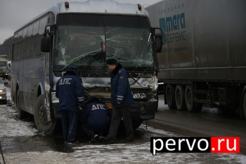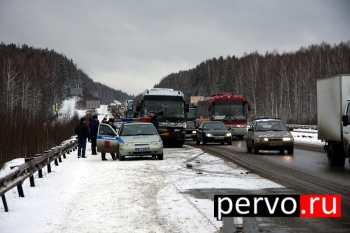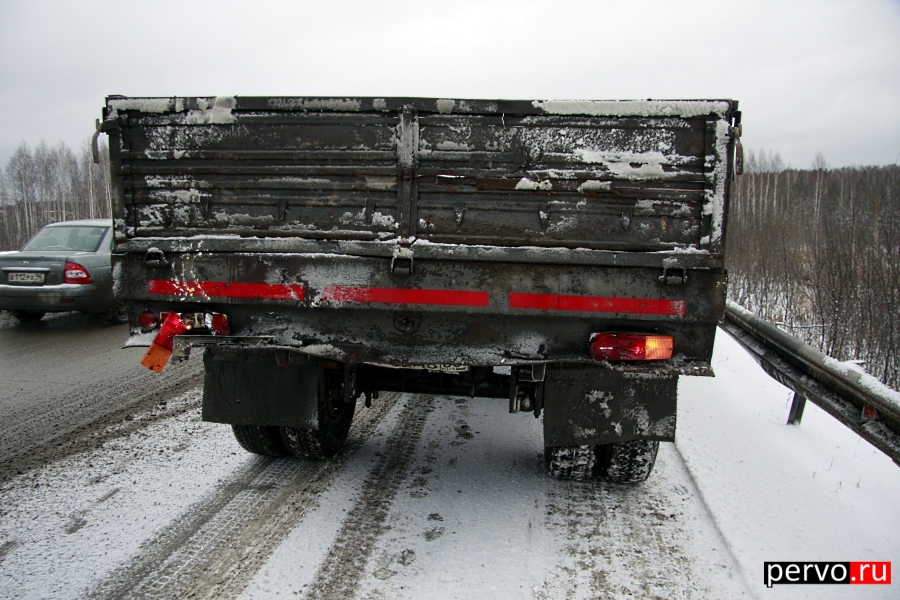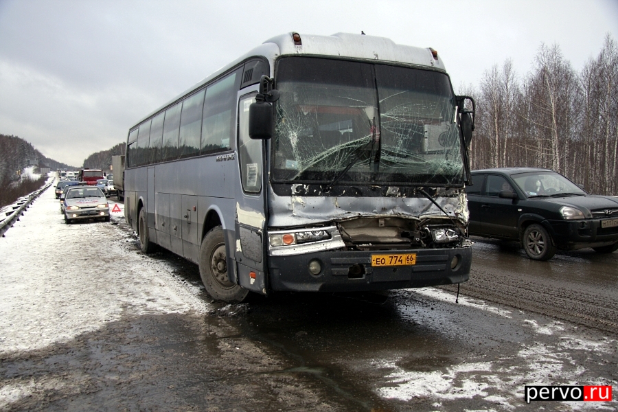 Сегодня, 19 марта 2012 года, в 9:00 на 331 километре Федеральной автодороги Екатеринбург-Пермь произошло дорожно-транспортное происшествие с участием пассажирского автобуса №155 маршрута Первоуральск-Екатеринбург. Водитель автобуса не обеспечил постоянный контроль над движением транспортного средства, двигаясь со скоростью, не соответствующей конкретным дорожным условиям, совершил наезд на автомобиль КАМАЗ идущий в попутном направлении.