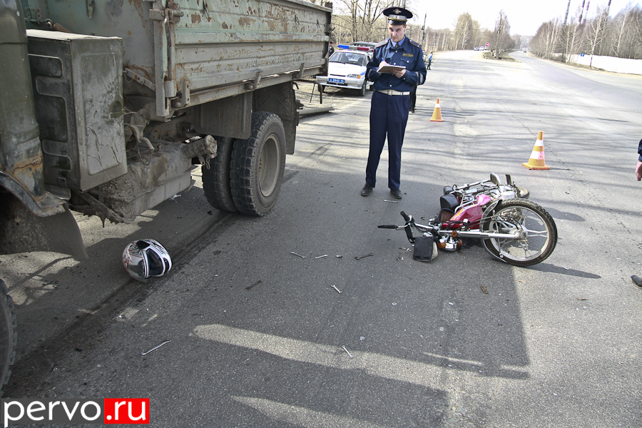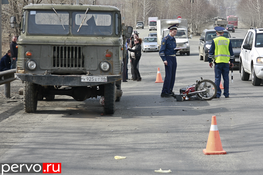 Со слов водителя ГАЗ 66, он двигался со стороны вещевого рынка в сторону посёлка Талица, по правому ряду, видел как с примыкающей автодороге которая ведёт с посёлка Пильная выезжает мопед, встречных автомашин не было, место позволяет нормально перестроиться , водитель мопеда при выезде на это пересечение стал почему то прижиматься к автомобилю ГАЗ 66, водитель ГАЗ 66 пытался уйти, прижимаясь вправо, допустил наезд на дорожное ограждение, приняв все меры чтоб избежать столкновения. Между тем водитель мопеда, по неизвестным пока причинам и обстоятельствам, попал под автомобиль ГАЗ 66.