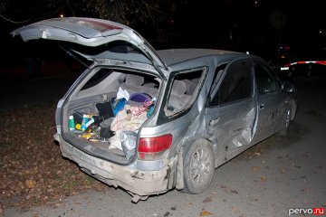 От сильного бокового удара, Toyota выкинуло на пешеходную аллейку. По счастливой случайности, пешеходов в столь поздний час не было. В автомашине Toyota находились три человека — водитель и две девушки пассажирки, в автомашине ВАЗ 2109 водитель и пассажир.