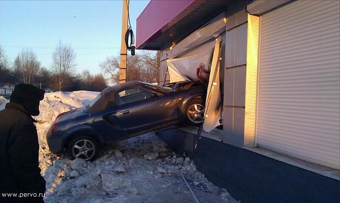 Не справившись с управлением, пьяный водитель на большой скорости влетел в окно ларька.
