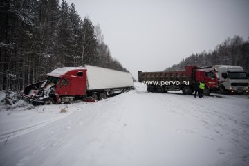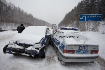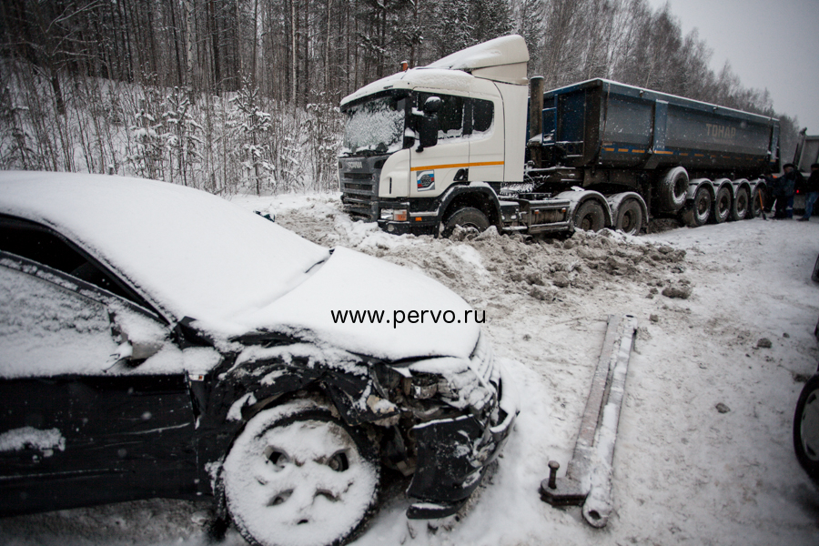 Сегодня, 17 января 2014 года, около 14:00 на Федеральной трассе Пермь-Екатеринбург 331-332 км., произошло сразу несколько серьезных дорожно-транспортных происшествий с участием восьми автомобилей.