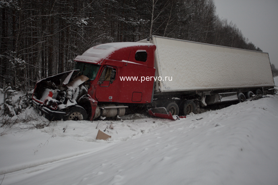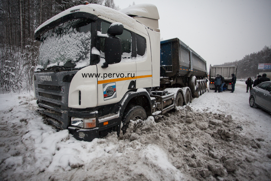 Водитель автомобиля Opel, двигаясь в правом ряду, не выбрал скорость движения, соответствующую погодным условиям, не справился с управлением и допустил занос. Следующий сзади в попутном направлении в правом ряду грузовой автомобиль Scania не смог предотвратить столкновение с легковым автомобилем, после которого оба автомобиля съехали с проезжей части.