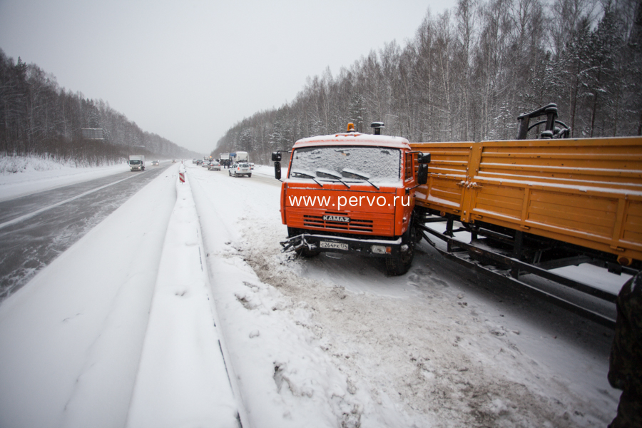 По предварительной информации, в момент ДТП на проезжей части гололед отсутствовал, однако имеются дефекты в асфальтовом покрытии проезжей части в виде колейности. Также идет снегопад, в результате чего видимость дороги не превышает 50 метров.