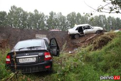 От столкновения автомашину ВАЗ 21099 отбросило на Ладу Приору, котрая двигалась в попутном направлении. В результате данного дорожно-транспортного происшествия две машины ВАЗ оказались в кювете.