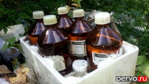 Вчера в районе Федеральной трассы Пермь-Екатеринбург, 302 километр, грибник нашел свалку токсичных препаратов. На месте были обнаружены стеклянные бутыли, канистры, коробки с надписями: «Серная кислота», «Хлорная кислота», «Азотная кислота», «Метанол», «Фтористый калий», «ТОКСИЧНО» - на площади примерно 30 квадратных метров.