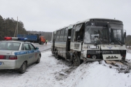 Госавтоинспекция Первоуральска ведет дознание по факту столкновения погрузчика КамАЗ и автобуса ПАЗ на 6 км автодороги «Первоуральск-Шаля».
