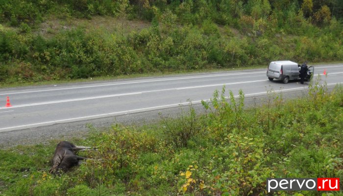 Автолюбитель за рулем «Лада-Ларгус» сбил выбежавшего на дорогу лося. В результате аварии пассажир легковушки — женщина 1954 года рождения погибла не месте ДТП до приезда бригады медиков.