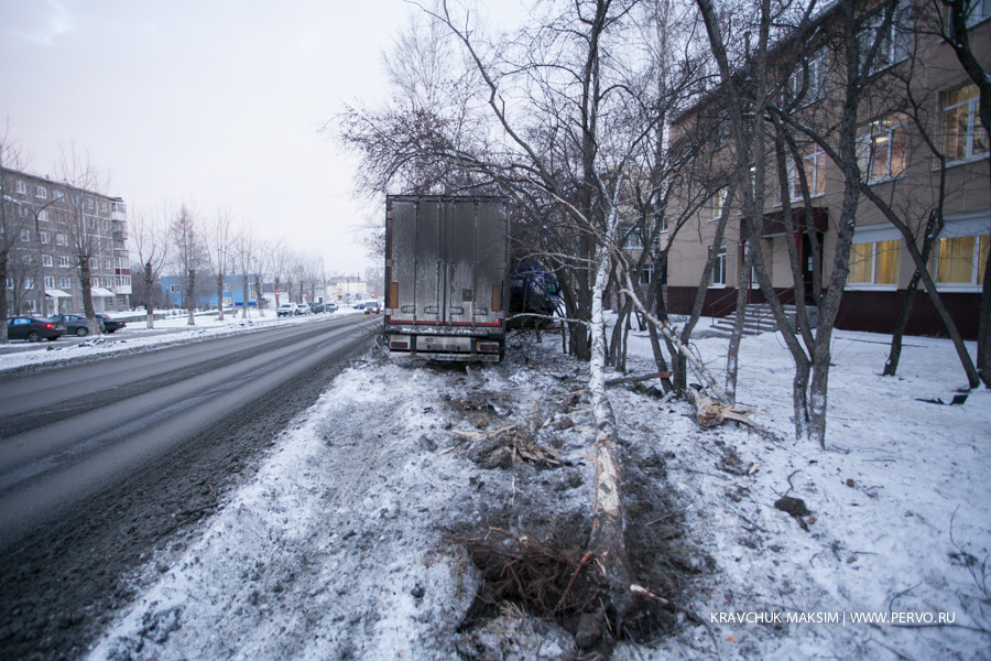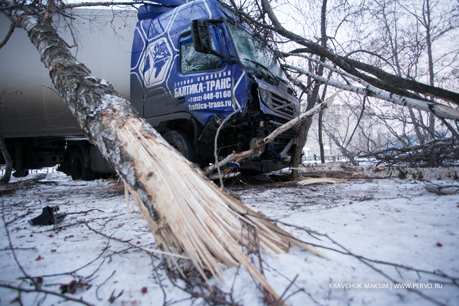 В воскресенье, 29 ноября, в 23:55 в Первоуральске в районе улицы Вайнера 4, водитель тягача «Volvo» с полуприцепом не справился с управлением, совершил съезд на обочину дороги, «спилив» несколько берез, тем самым повредил бак с горючим, вследствие чего произошла утечка дизельного топлива в снег.