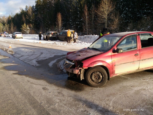 22 января 2017г. в 9:35 на 2 км подъездной дороги г. Первоуральск, водитель 1974г.р. управляя автомашиной Reno Logan не верно выбрал скорость с конкретными дорожными и метеорологическими условиями, не справился с управлением и допустил выезд на сторону дороги предназначенную для встречного движения, где произошло столкновение с движущейся во встречном направлении автомашиной Nissan Note под управлением водителя 1976г.р., от удара автомашину Nissan Note отбросило на движущуюся позади автомашину Lexus RX-350 под управлением водителя 1964г.р.