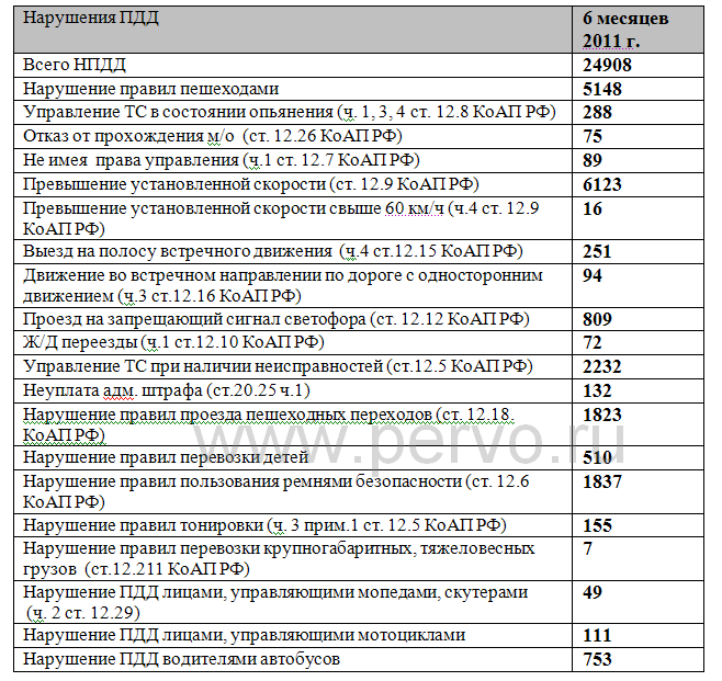 За шесть месяцев 2011 г. на территории городского округа Первоуральск зарегистрировано 86 (2010 г. – 113) ДТП с пострадавшими, в которых 17 (2010г. – 9) человек погибло и 114 (2010г. – 170) человек травмировано. Показатель тяжести последствий (соотношение числа погибших на 100 пострадавших) составил 13% (5% в 2010г.).