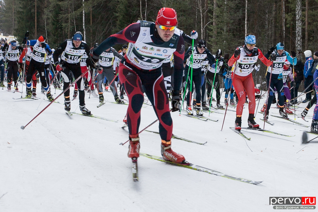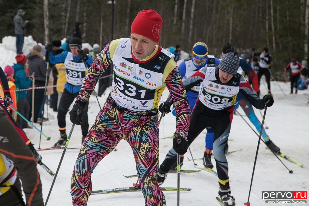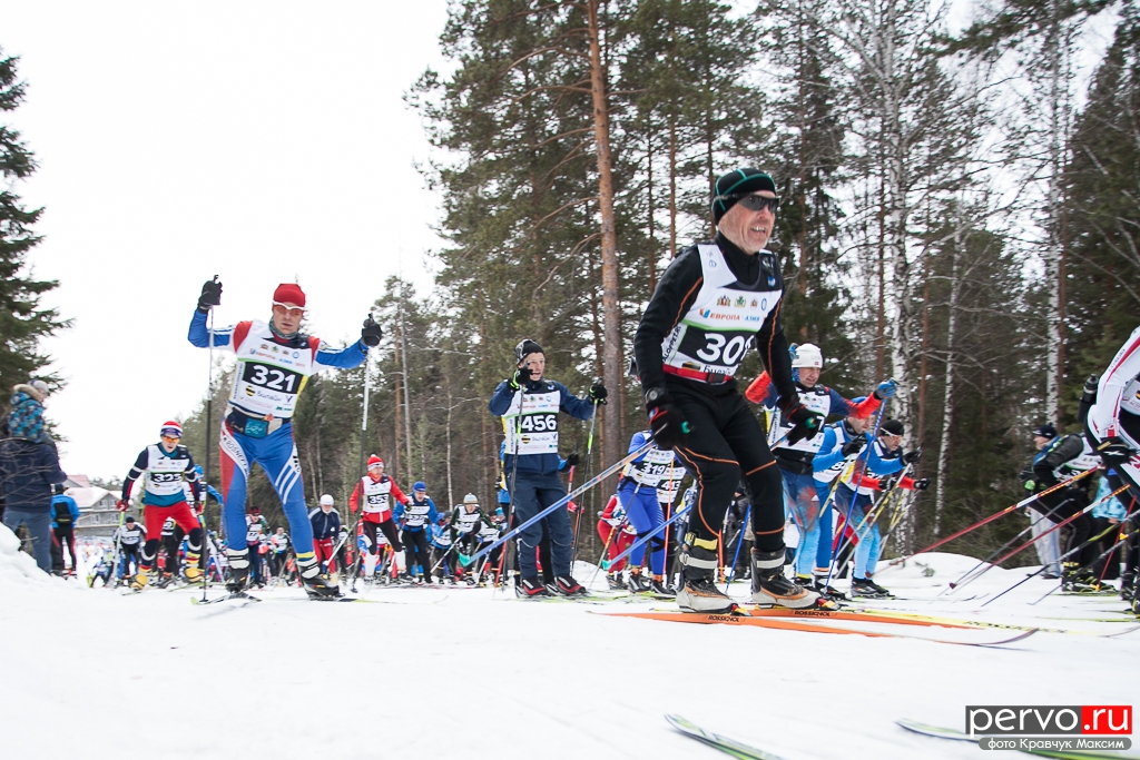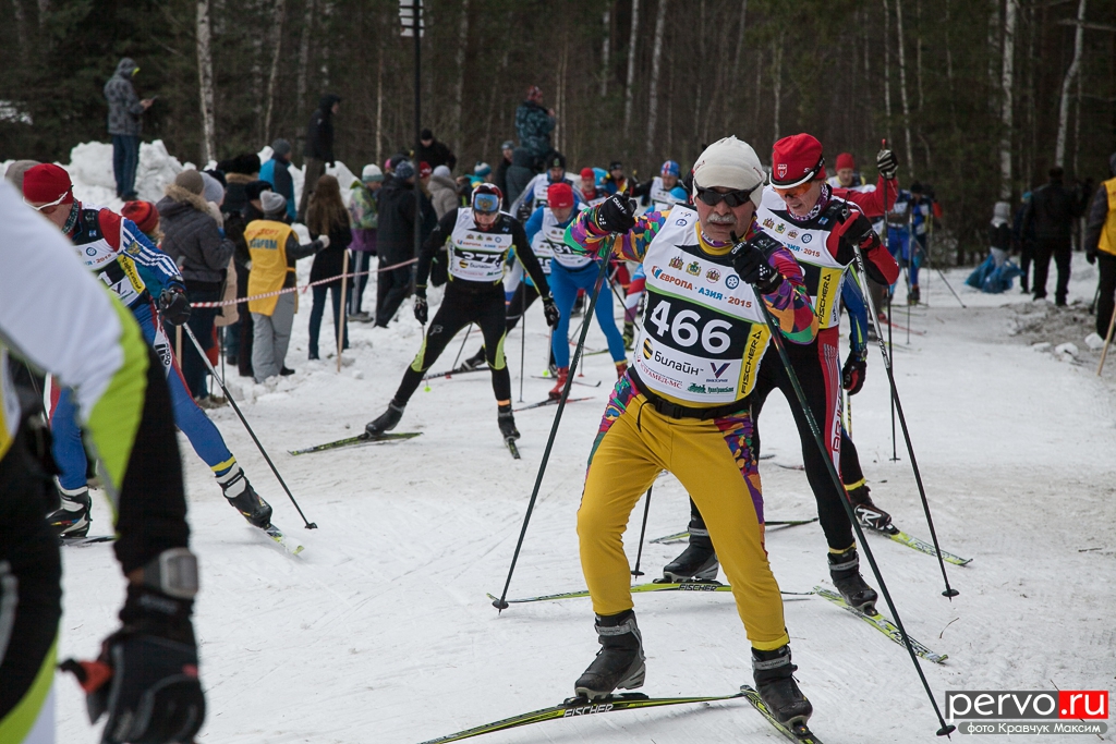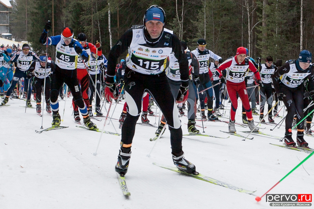 480 участников из Москвы, Пензы, Кургана, Челябинска, Перми и других городов России приняло участие в XXXII Международном лыжном марафоне «Европа - Азия», старт был дан в Первоуральске на границе «Европа-Азия».