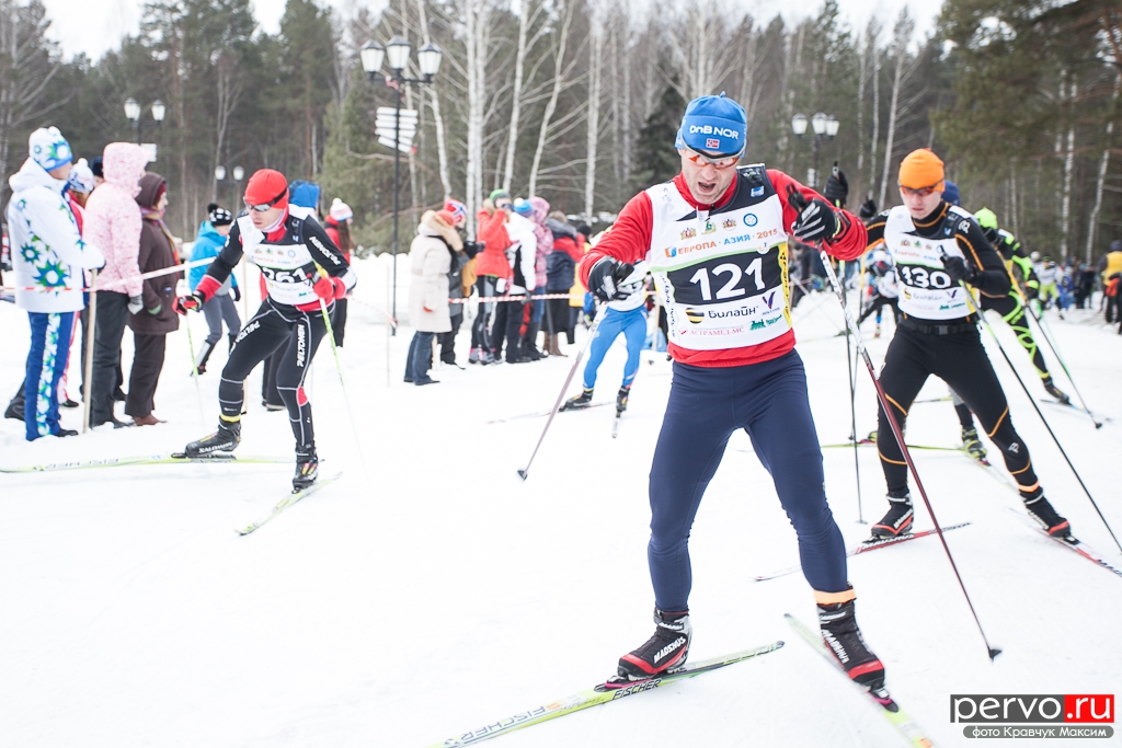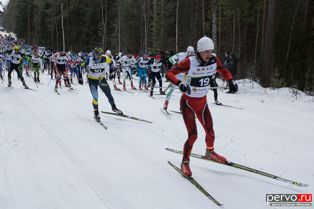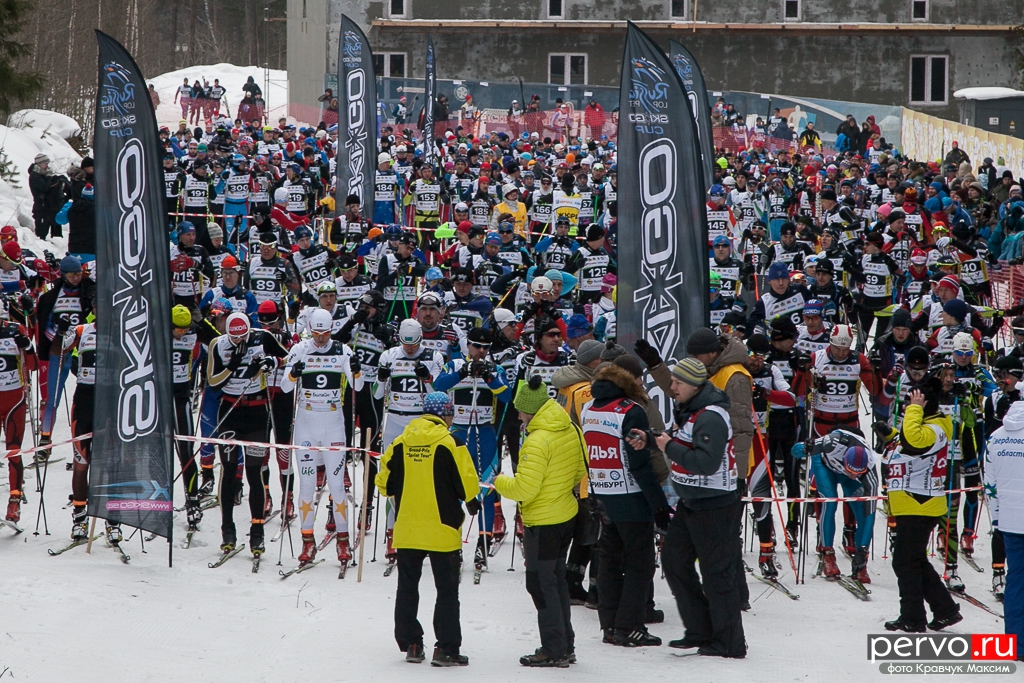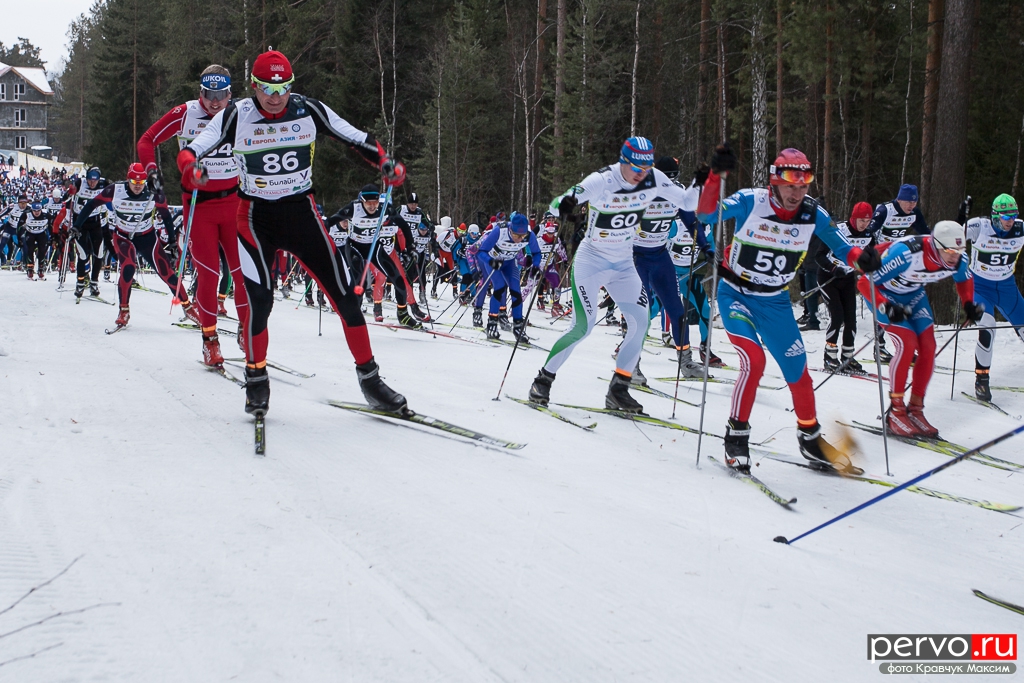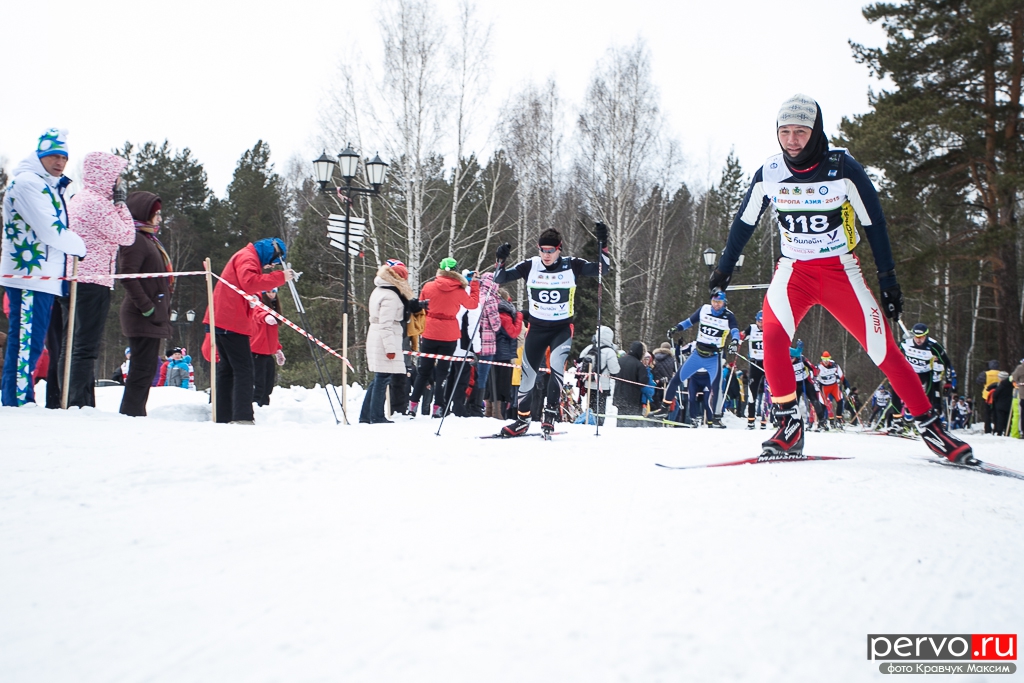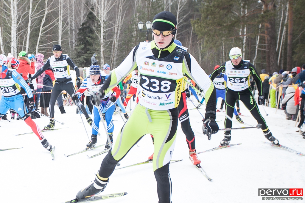 480 участников из Москвы, Пензы, Кургана, Челябинска, Перми и других городов России приняло участие в XXXII Международном лыжном марафоне «Европа - Азия», старт был дан в Первоуральске на границе «Европа-Азия».