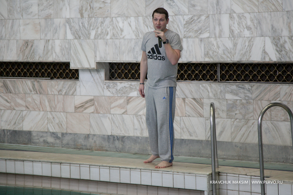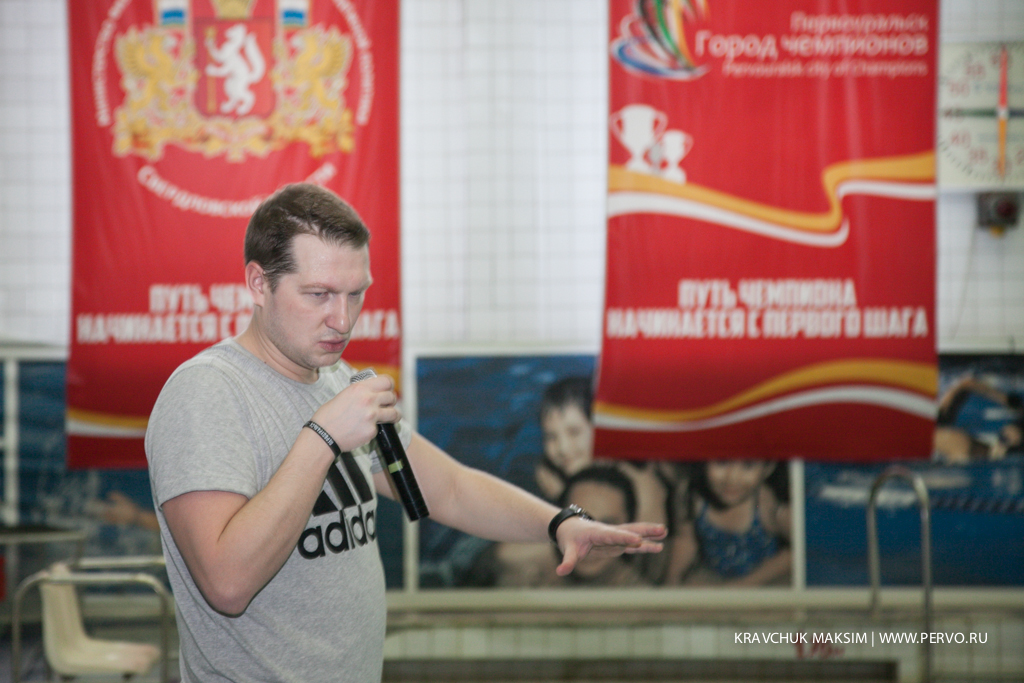 Юрий Александрович приехал в наш город по приглашению организации «Первоуральск - город чемпионов». Юрий рассказал о профессиональных секретах и распространенных ошибках - юные спортсмены отработали толчки от борта, правильность входа руки в воду во время различных видов плавания и движение тела во время плавания.