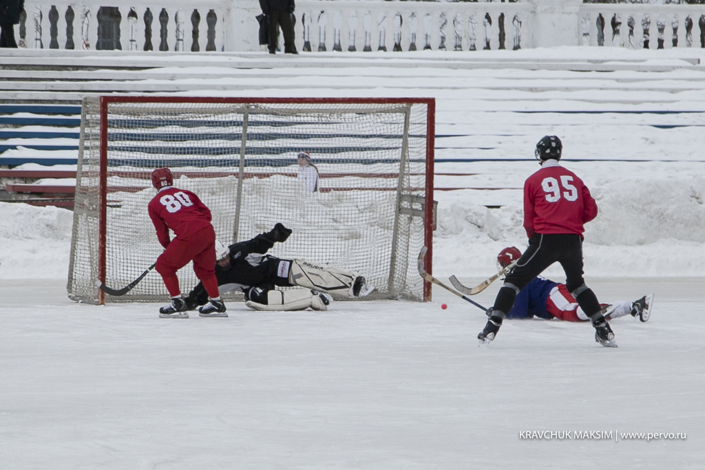 На стадионе «Уральский трубник» в Первоуральске состоялся товарищеский матч по хоккею с мячом с участием игроков команды и её болельщиков.